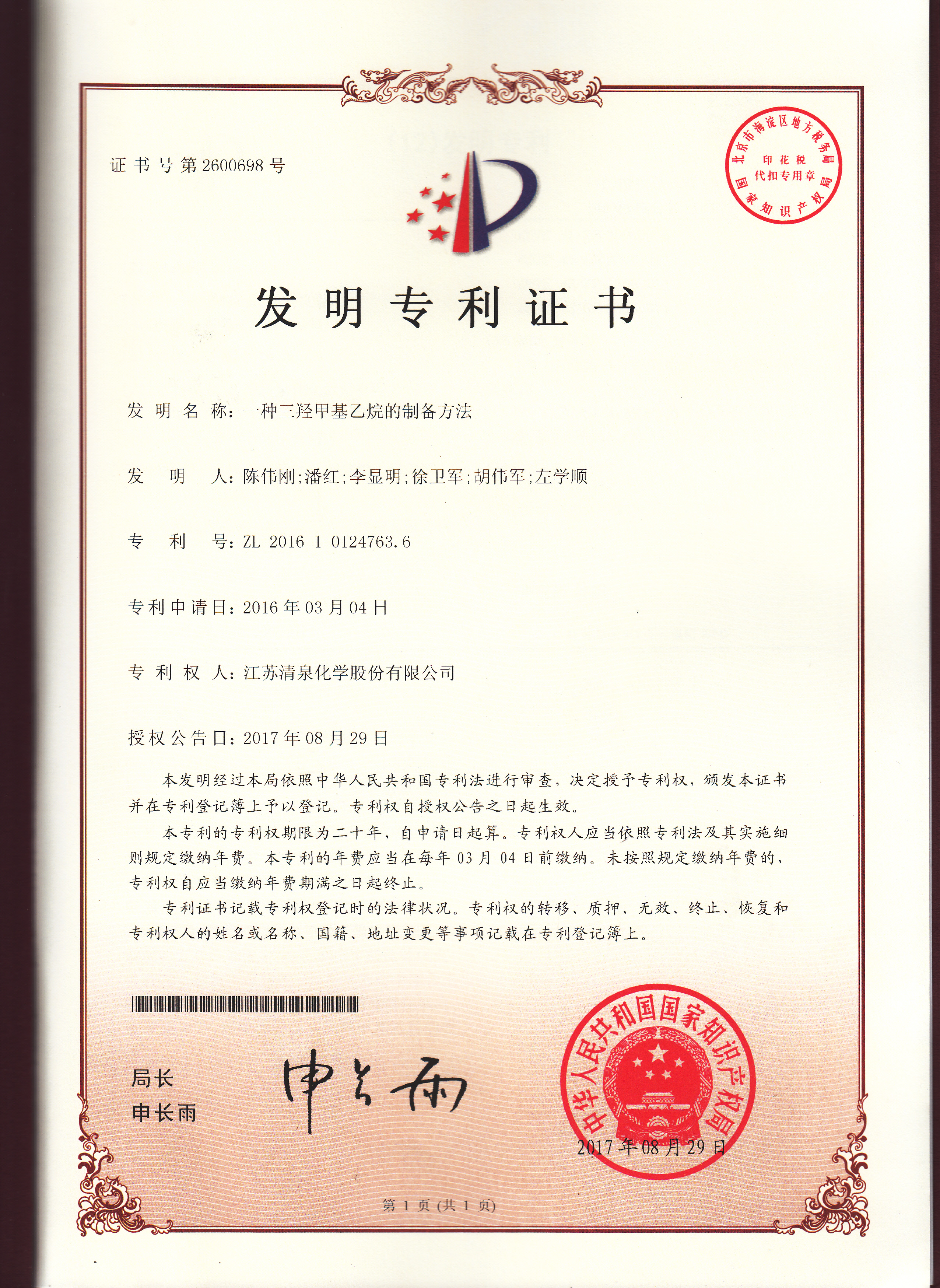 Qingquan patent